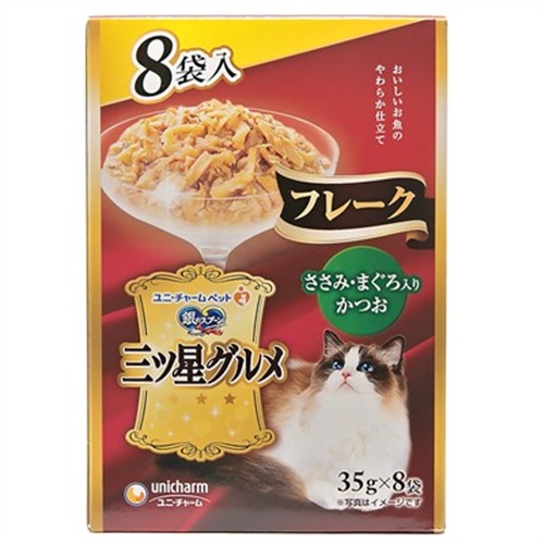 ユニ・チャーム 銀のスプーン 三ツ星グルメ パウチフレーク ささみ・まぐろ入りかつお 猫用 35g×8袋入