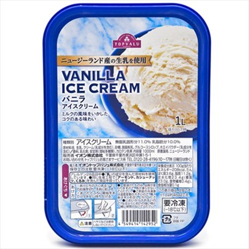 冷凍 トップバリュ ニュージーランド産の生乳を使用 バニラアイスクリーム 1L