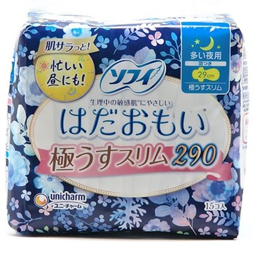 ユニ・チャーム ソフィ はだおもい 極うすスリム290 羽つき 多い夜用 29cm 15個入