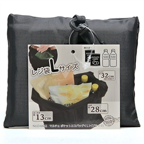 パール金属 マルチェ ポケットエコバッグ ブラック Lサイズ
