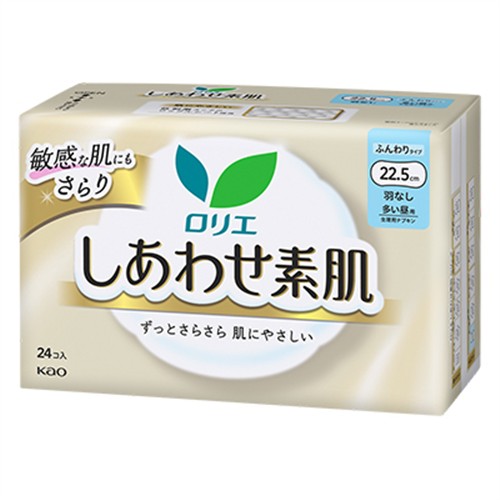 花王 ロリエ しあわせ素肌 多い昼用 羽なし ふんわりタイプ 22.5cm 24個入