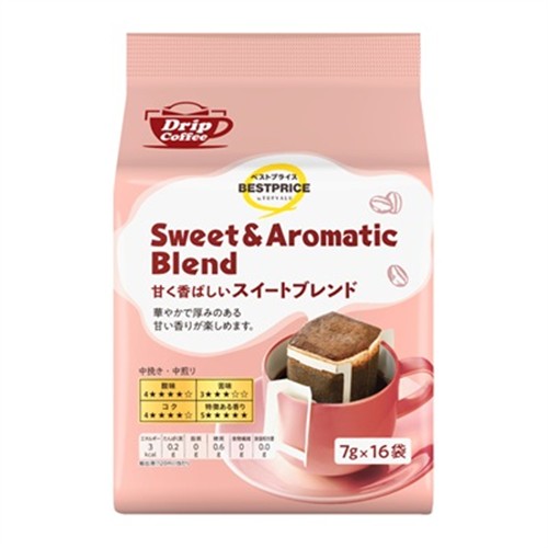 トップバリュ ベストプライス 甘く香ばしいスイートブレンド ドリップコーヒー 7g×16袋入